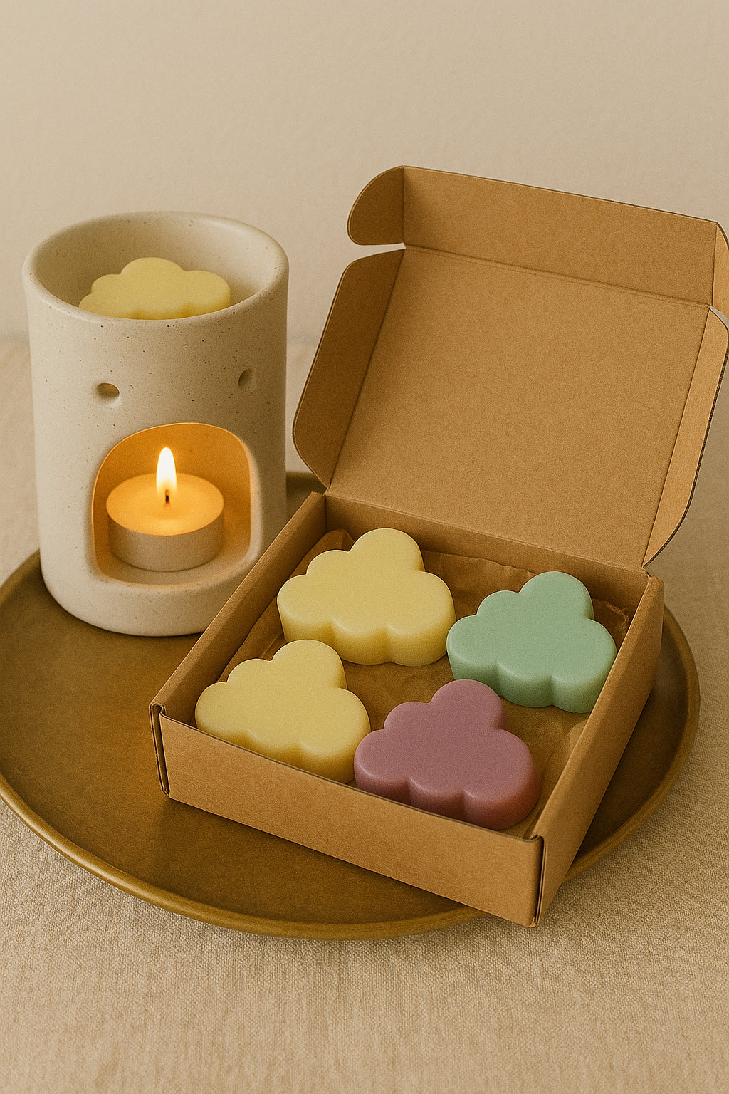 Déjate envolver por la suavidad de nuestras nubes aromáticas, los waxmelts artesanales que llenan tu hogar de calma y dulzura. Hechos a mano 100% vegetal y fragancias de alta calidad, se derriten lentamente liberando un aroma duradero y envolvente.